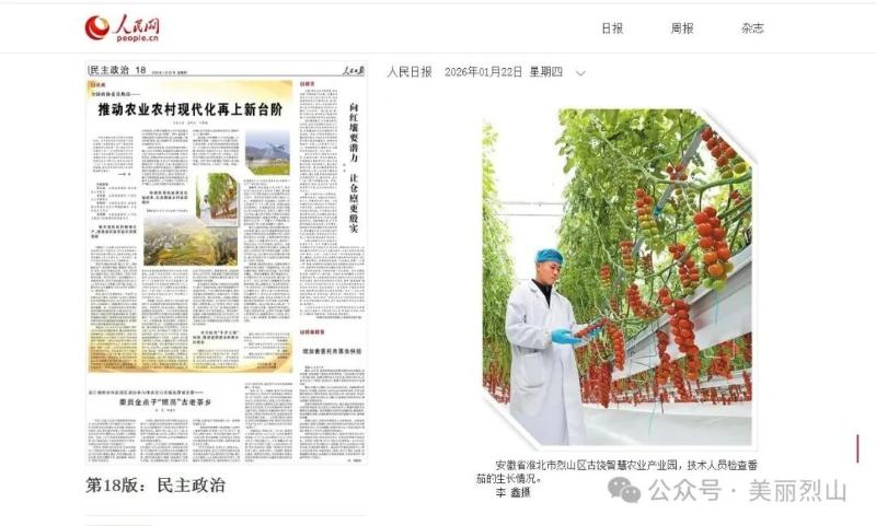《人民日报》关注烈山区古饶镇智慧农业产业园