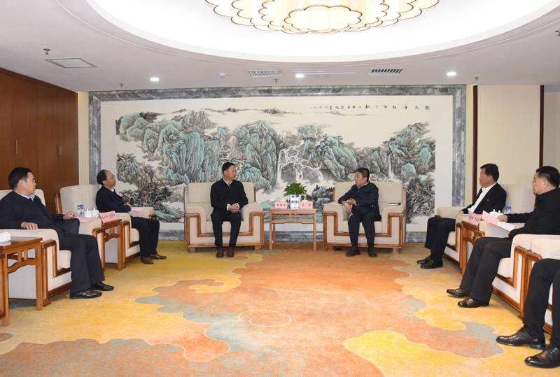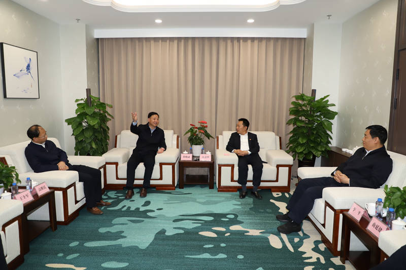 黄晓武一行与白山市委副书记、市长马坚,市委常委、秘书长费洪海,市委副秘书长黄春海座谈,交流资源枯竭型城市转型经验。