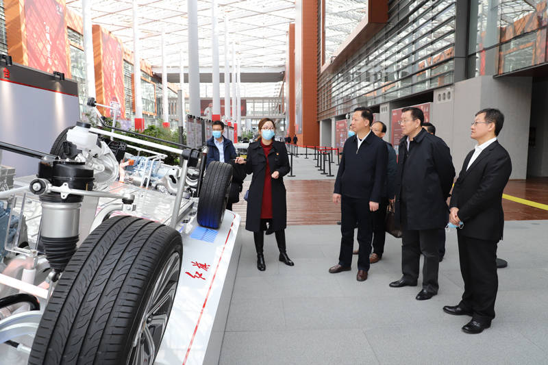 在中国一汽长春总部,黄晓武一行在吉林省工信厅副厅长孙大维、研发总院副院长马岩陪同下,参观红旗工厂H系列总装车间、红旗文化展厅和研发总院等处。